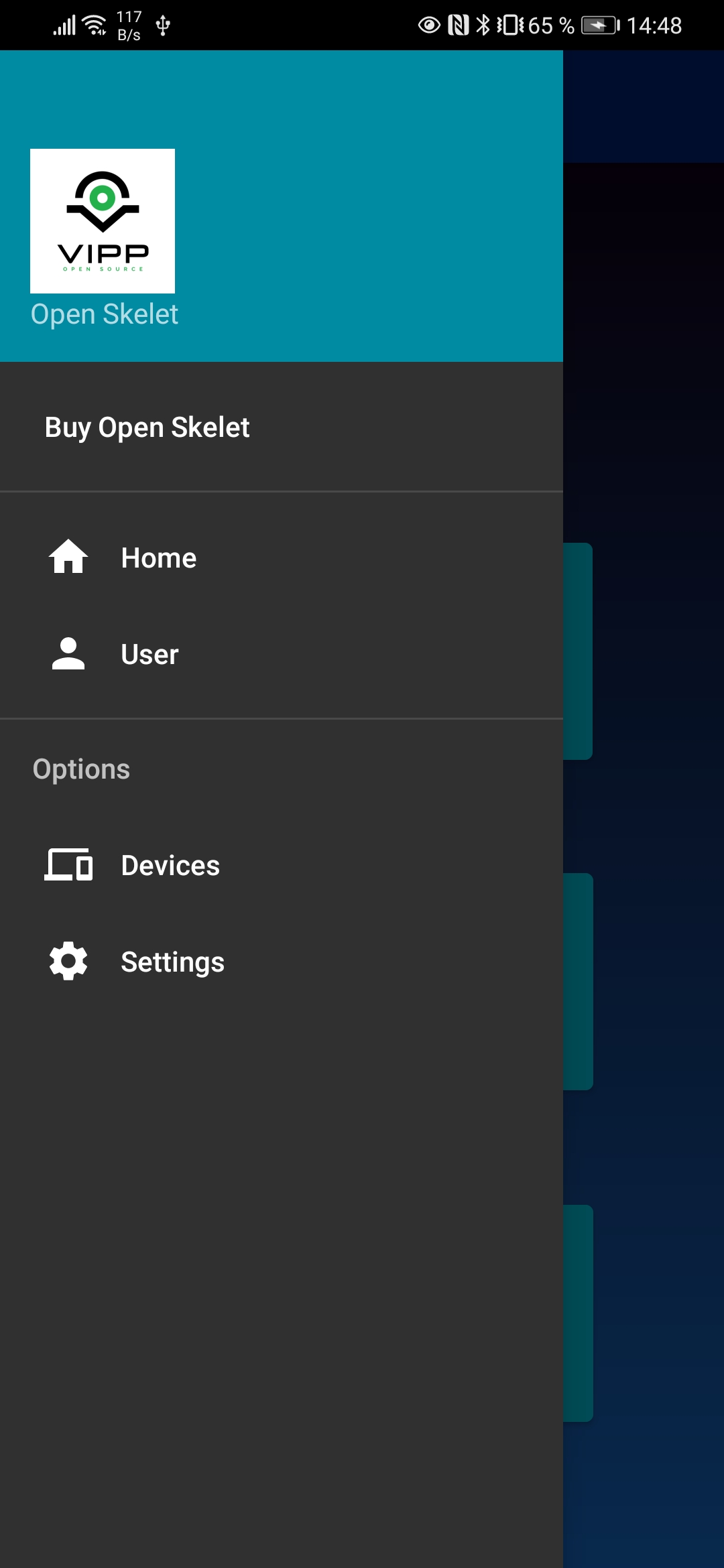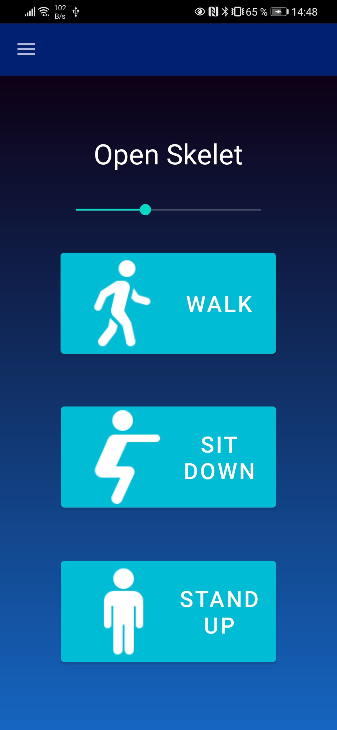 Open Skelet přichází s aplikací, přes kterou se připojíte k vašemu zařízení přes Bluetooth. Aplikace slouží jako dálkové ovládání a monitorovací systém zařízení.